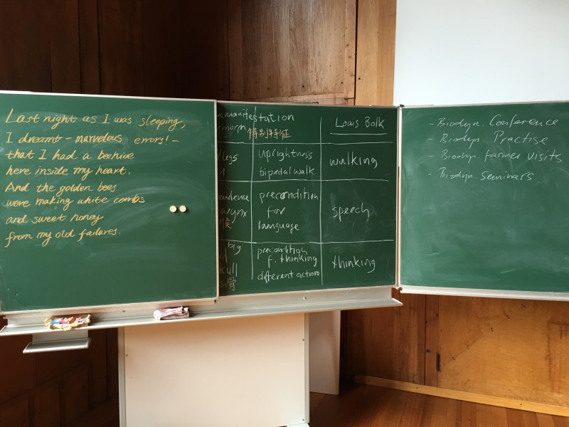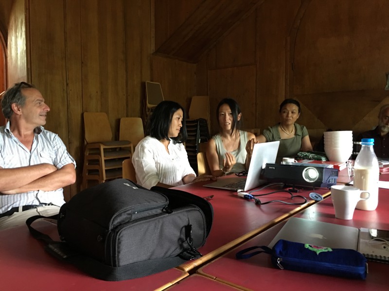 Dienstag den 30. August, Götheanum in Dornach, wir treffen uns im Glashaus mit den ISS HOPE Leuten, die jetzt 4 Monate in ihrem Zeitgeist-Küchen Frachter auf dem Gustav Güll Platz in Zürich eine öffentliche Station mit chinesischem Bio-Essen betrieben haben. Als Kunst im Rahmen der Manifesta, initiiert und realisiert von unseren Freunden Christoph Meier und Patrick Hari. Unsere lieben chinesischen Freunde Lifen Yang und ihr Bruder Erhong Yang wollten zum Schluss unbedingt das Götheanum sehen und wurden von Reto Ingold eingeladen und in den Häusern dort herumgeführt. Anschliessend hielt Liven einen Vortrag über ihre «Bio-Initiative» rund um das Kulturhaus TushengShiguan in Kunming, Yunnan-Region (Südwestchina) und ihr ländliches Leben dort. Ein reger Austausch mit Vertreterinnen der landwirtschaftlichen Sektion (Demeter) entsteht. Der Einblick in ein “anderes” China ist berührend. Obwohl wir heute eher ängstlich oder abwehrend nach China «schielen», ergibt ein direkter Blick in die Realität ein anderes Bild: sensible und kreative Leute mit alternativen Ideen, Idealismus, fairen Ideen und dem Willen Natur und Leben zu schützen mit Liebe, Respekt und ökologischem Tun, sowie einer entsprechenden Anwendungskunst in allen praktischen Bereichen des Lebens. Auch die Vermittlung ihres Wissens an die jüngeren Generationen gehört dazu. Es entstehen erste Pläne, wie man gemeinsam im Austausch bleiben kann, zum Beispiel durch eine Aktion “Bäuerin besucht Bäuerin” oder auch mit ersten Ideen für konkrete Produkte mit alten Sorten aus Yunnan. Bio nicht nur als Geschäftsidee sondern als humane Haltung in einer schwierigen Welt. Es wurde klar, dass NaturKraftWerke diese Gruppe unterstützen möchte und helfen will, den Blick nach China zu differenzieren. Wir werden uns weiterhin austauschen und vielleicht schon bald aus dem neuen «Alten China» Produkte bekommen, die ursprünglich, persönlich, biodynamisch und lecker sind.